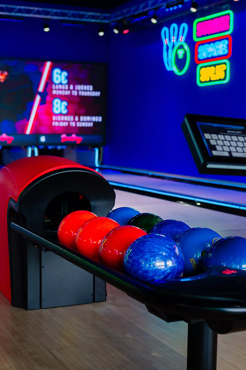 Disfruta de nuestras 4 pistas de bowling totalmente equipadas, con iluminación LED y marcador automático.